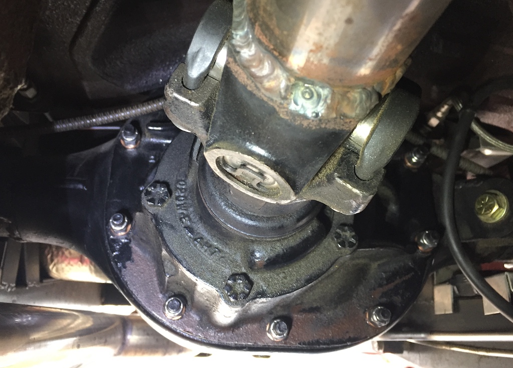 When Jim modified the rear axle to handle the coilovers, he made vertical mounting pads for them to bolt on to. You can see the outline of the pads in the photo above. Today, we took all this apart and added an extender to the pad. This extender basically moves the axle about an inch upwards.