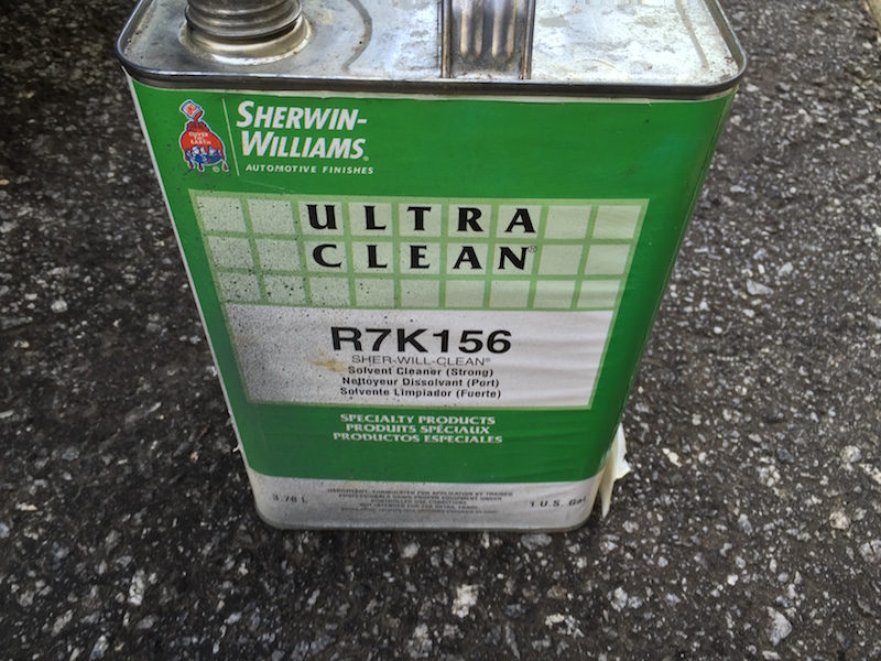 IMG_3284This is pre-paint prep solvent.  This is NOT thinner and it is designed specifically to remove this kind of mess.  No, it won’t work immediately.  Best results are obtained by dabbing a paper towel with this solvent, then applying to the rubbery residue and repeat.