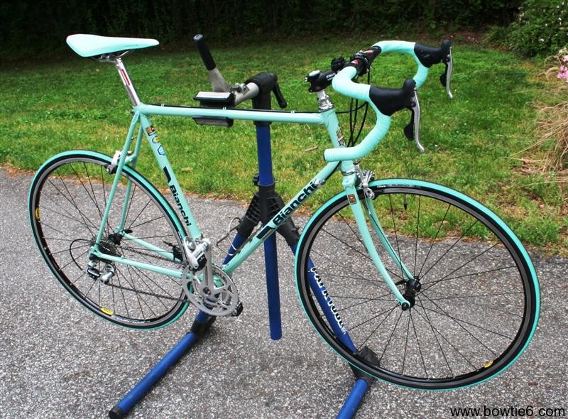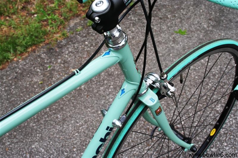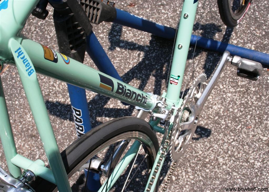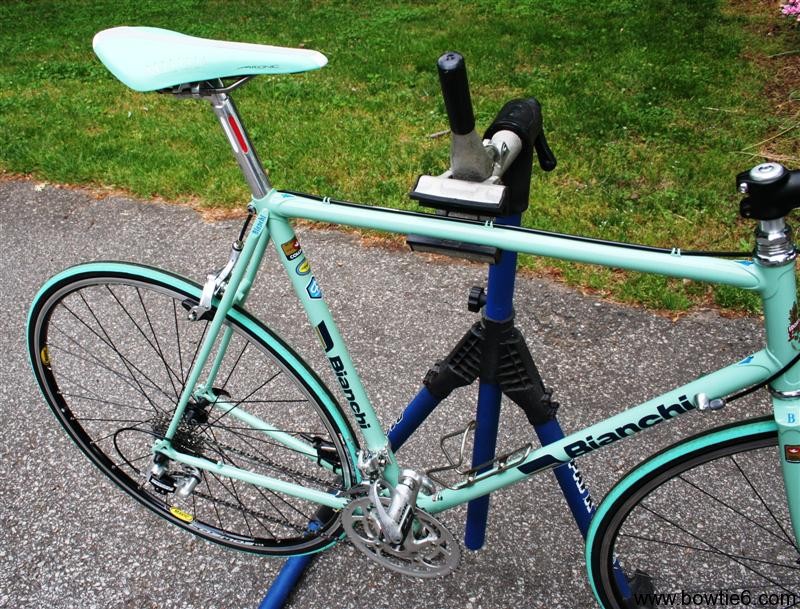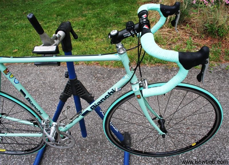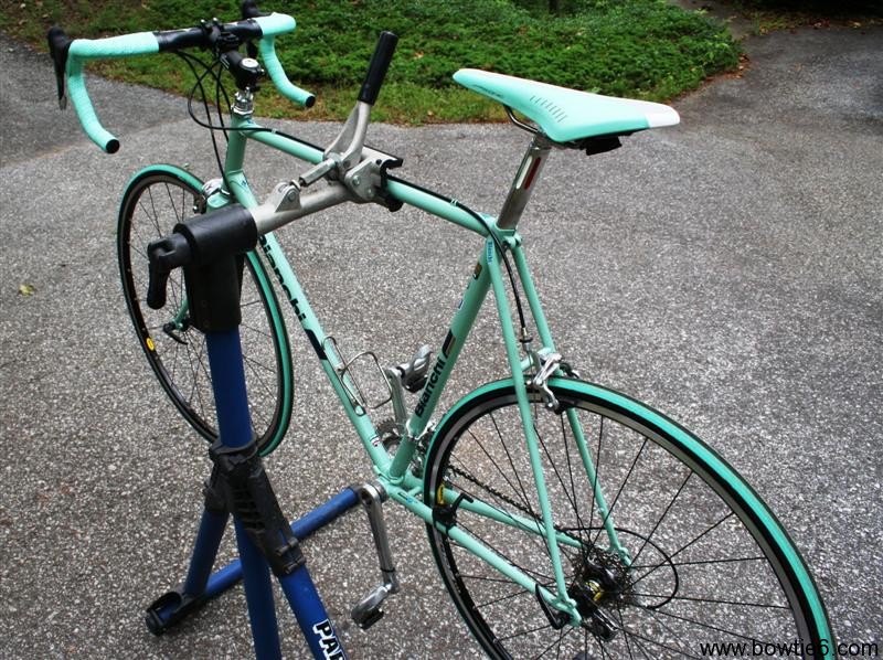 I’ve been asked why go to all this trouble.  Well, I suppose it is because back in the 80’s when I first got into cycling and had little to no money to spend on expensive frames, I promised myself one day I would have a celeste Bianchi.  I remember that back in the 80’s there were several mail-order bike shops (before the Internet) that would send these awesome catalogues.  In the pages of these catalogues would be photos of gorgeous Italian frames made by the likes of Pinarello, Bianchi, Ciocc, deRosa, etc.  Right out of college, I did not have much cash to spend on any of these frames, so I basically said “one day”…