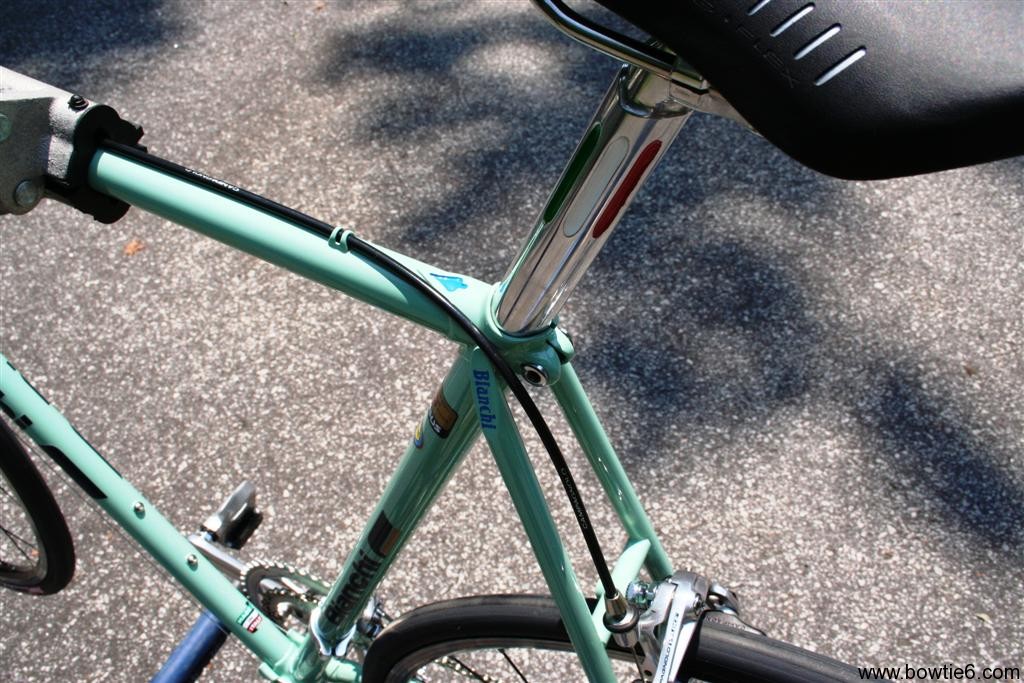 The photo above also shows another view of the Italian flag motif as well as the blue painted engraving on the seat post lug.  Cool, huh?