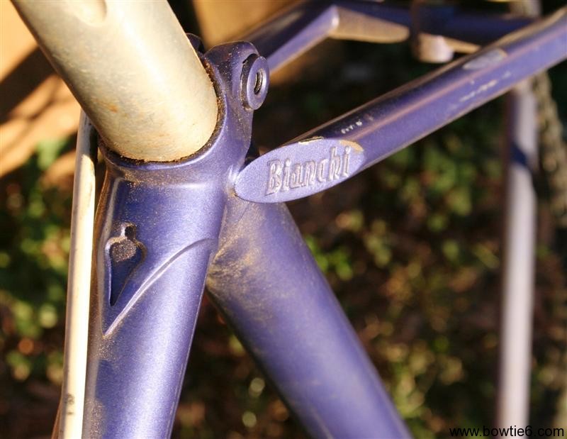 Purchase price on the frame was quite cheap – an example of a prior owner not knowing what they had!  The frame and fork are Bianchi with lugs stamped with the Bianchi logo.