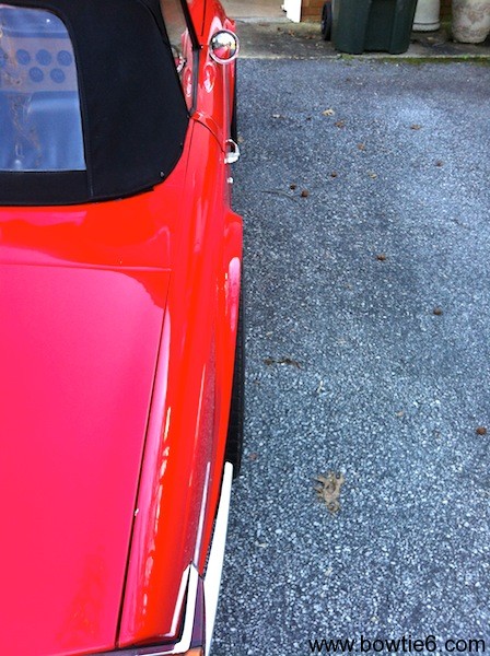 When Jim and I worked on fitting bowtie6‘s body shell on the new frame, we took a long time carefully fitting the body shell, fenders, doors, bonnet and boot lid. I remember we actually spent HOURS doing this. The effort was well worth: all body gaps came out very consistent. The downside was we had to make thicker body-to-frame spacers for the rear half of the car. This essentially slightly “bent” the body and caused the rear half of the body shell to come up and thus exaggerate the distance between the rear tires and the rear fender.