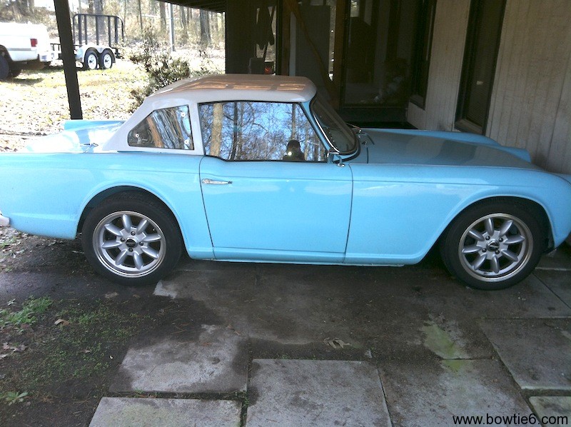 Just as in the case with my cousin Jim’s TR4, my frame has coilovers and clearance is not an issue.  Finally, bowtie6 does not use any form of wheel spacers.
